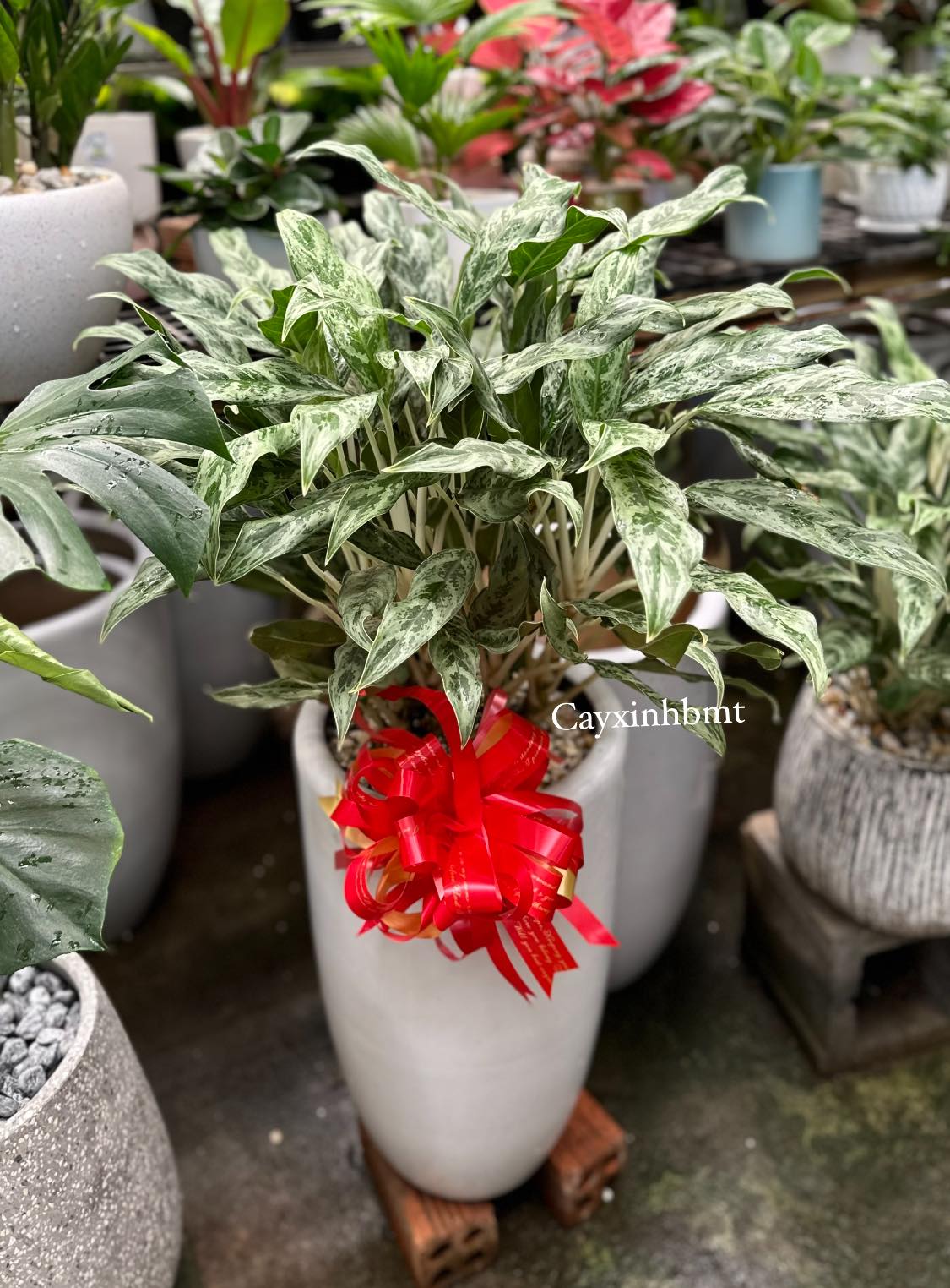 Cây giữ tiền chậu bom sứ trắng
