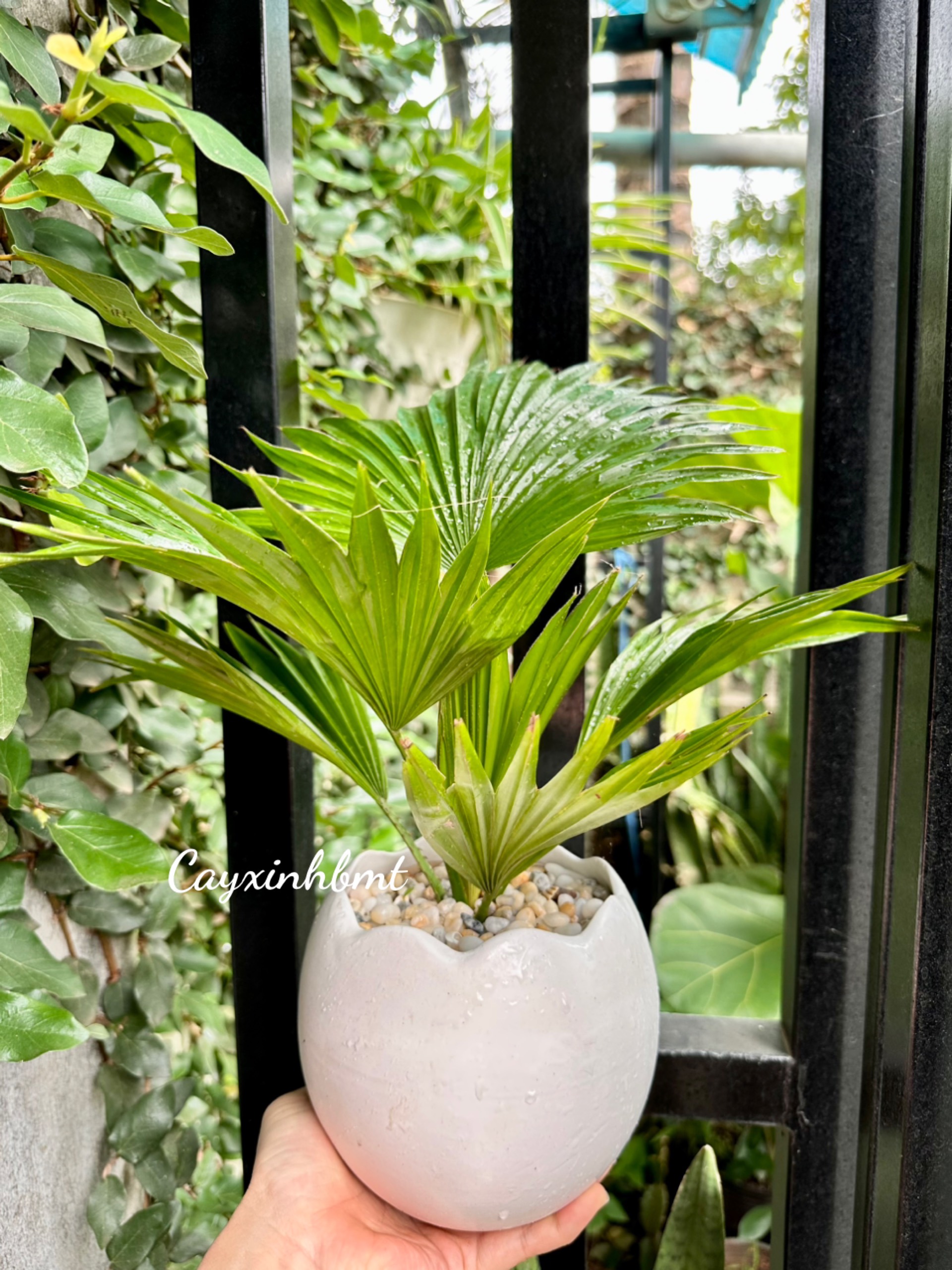 -Cây cọ có tên khoa học là Rhapis Excelsa,Cây cọ có kích thước khoảng từ 1-2m với lá khá to, đầu lá tròn và xẻ tua rua đẹp mắt và thường mọc thành cụm với nhau.Cây cọ ta hay còn được gọi là cây cọ lùn, được trồng rộng rãi ở nước ta. Cây cọ lùn có sức sống tốt, phát triển trong môi trường đủ độ ẩm, nước, bạn có thể trồng cây trong nhà hay ngoài sân đều được.