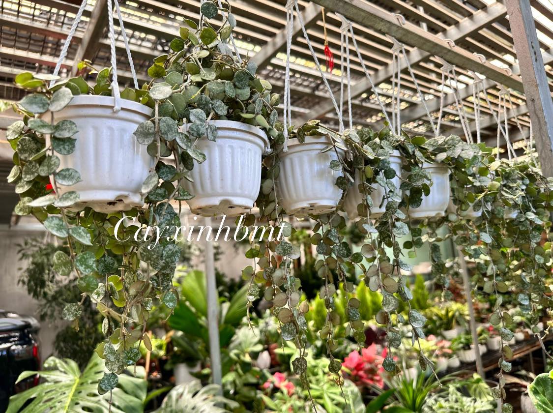 String of Hearts (Ceropegia woodii) là một giống cây mọng nước ở nam phi. Cây có thể vươn tới 3,6m trong môi trường tự nhiên của nó, bên cạnh đó cây còn được gọi là Rosary Vine và Sweetheart Vine. Cây lá tim có lá hình trái tim, lá màu tím bắt mắt. Là cây rủ dễ trồng, phù hợp với trồng balcony nhiều nắng hay ít nắng đều được. dây rủ dài 40-45cm