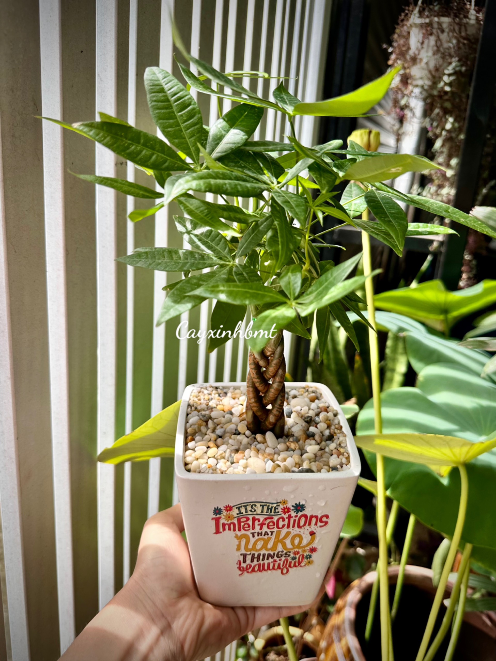 -Cây kim ngân tên khoa học: Pachira aquatica.Cây Kim ngân còn được gọi là cây tiền. Một loại cây bonsai đặc biệt, cây kim ngân thắt bím có khả năng xua đuổi côn trùng như muỗi bằng chính mùi hương đặc thù của cây.