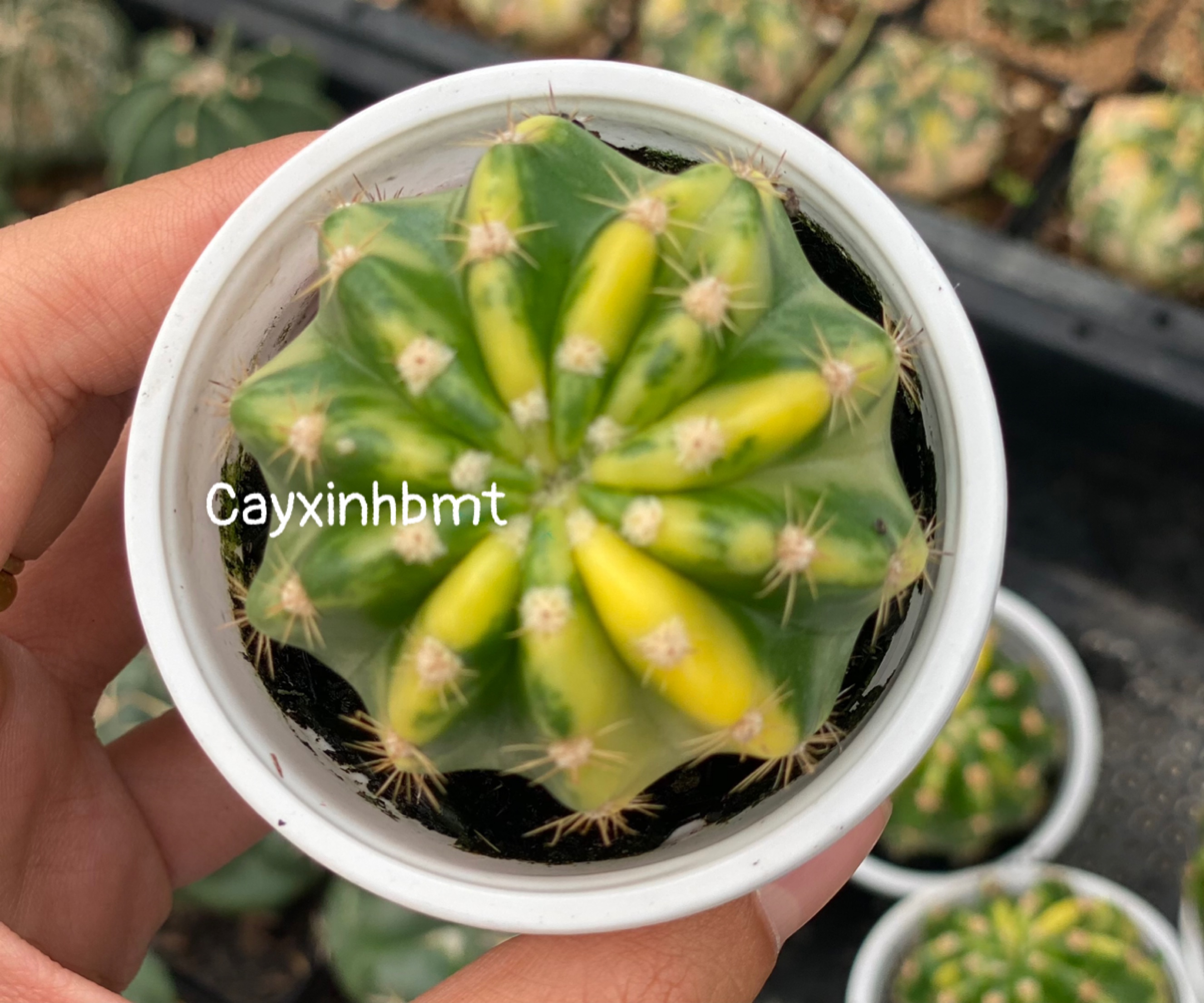 -Cây Echino Lem vàng với size 2.5-3.5cm,hoa màu trắng